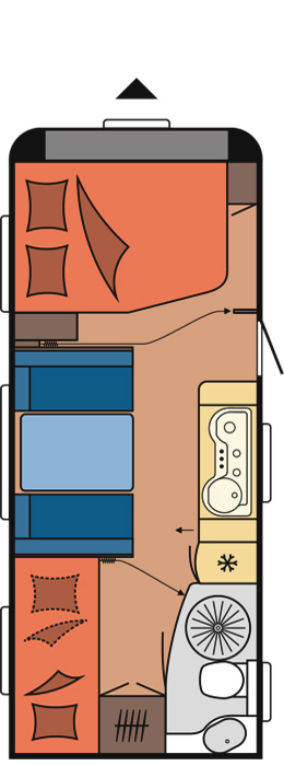 - Die Fahrzeuge verfügen über 4 bzw. 6 Schlafplätze.
