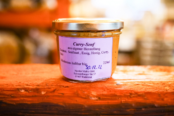eigene Herstellung, 220ml im Glas Zutaten: Senfsaat, Essig, Honig, Curry, Salz