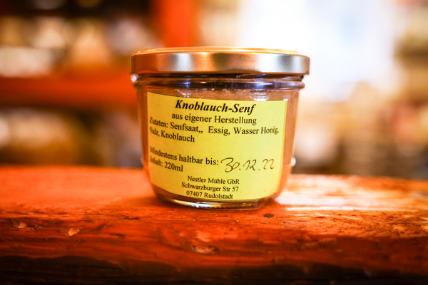 eigene Herstellung, 220ml im Glas Zutaten: Senfsaat, Essig, Wasser, Honig, Salz, Knoblauch