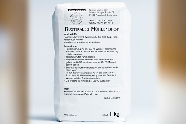 1kg Fertig-Backmischung aus Roggenvollkornmehl, Weizenmehl Typ 550, Salz, Hefe, Fertigsauer (dunkel)